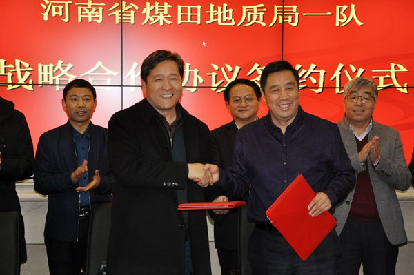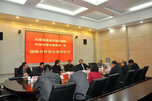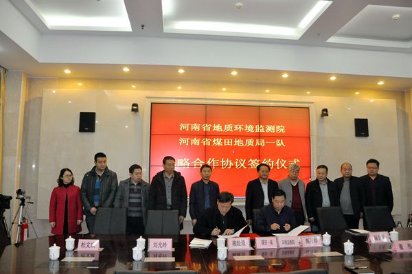 News Center 12月28日,我队与河南省地质环境监测院在郑州签订战略合作协议,河南省地质环境监测院院长、党委副书记甄习春,我队党委书记、队长燕建设在战略合作协议书上签字。