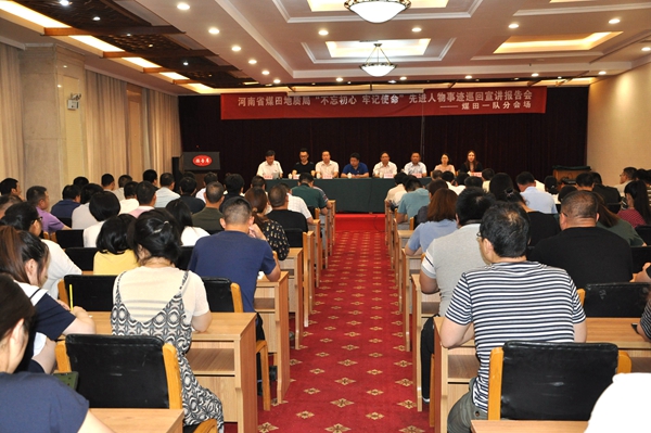 7月10日下午,省煤田地质局“不忘初心 牢记使命”先进人物事迹巡回宣讲第九场报告会在我队郑州基地召开。局工会主席缑延民主持报告会。我队党委书记、队长燕建设致辞。