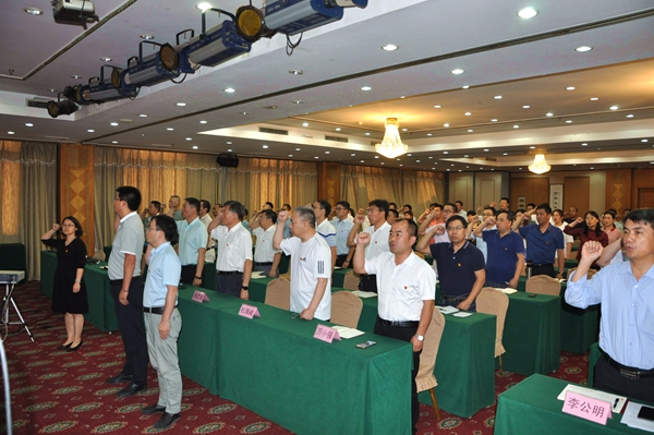大会在雄壮的国歌声中开幕。面对鲜红的党旗,新党员杨延伟、卫华鹏进行了入党宣誓,老党员全体起立重温了入党誓词。宣誓完毕后,新党员代表杨延伟进行了表态发言。
