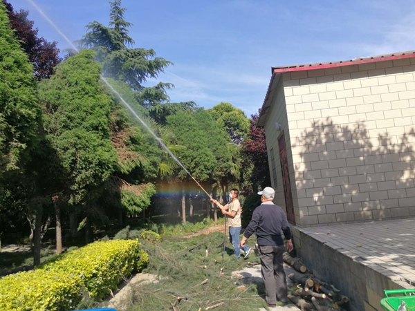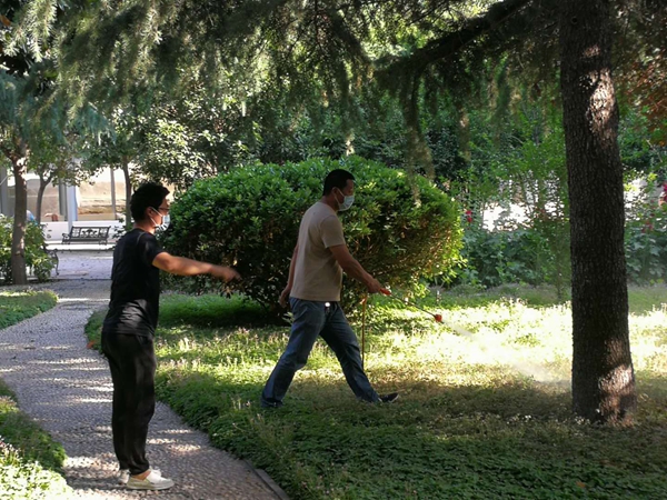 夏季是各种花草树木病虫害的高发期,此次喷洒打药,可以有效预防绿化树木病虫害,保持基地大院良好的生态环境。